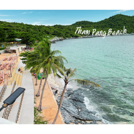 Tham Pang Beach If you come to Koh Sichang and genuinely want to swim in the ocean, there's only one place that is the perfect match "Tham Pang Beach." This is Koh Sichang's most popular beach, boasting crystal-clear water, clean sand, and a tranquil atmosphere perfect for a comfortable, relaxing break. (A special note: While photos might make it look like an ordinary beach, the reality is stunning. The sound of the waves and the gentle sea breeze are enchanting, making you want to stop and stare, unable to tear your eyes away.)