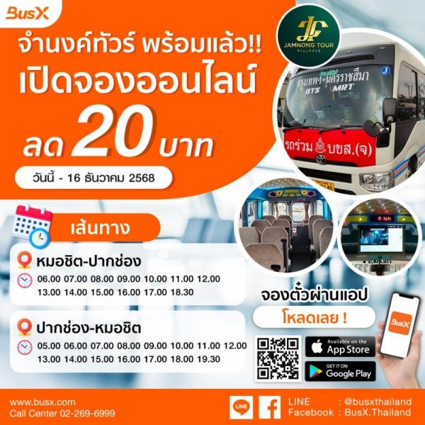 ผ่านแอป BusX 🚌 หมอชิต ↔️ ปากช่อง