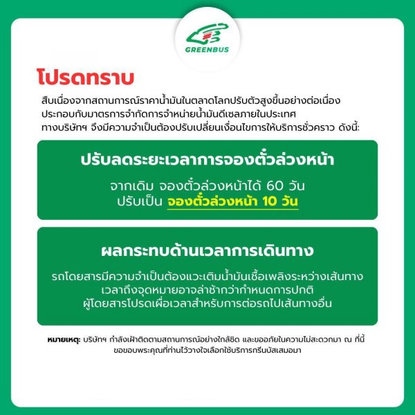 ⚠️กรีนบัส ปรับเวลาจองตั๋วล่วงหน้า ได้สูงสุด 10 วัน